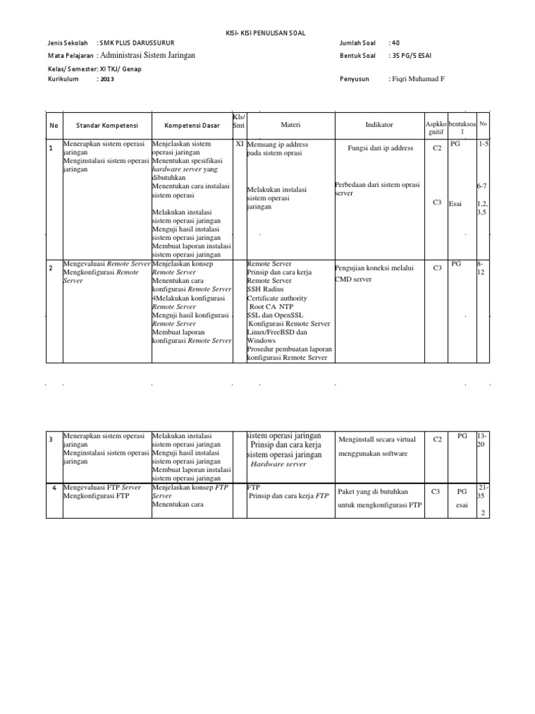 Kisi kisi soal kelas 2 tema 5 pengalamanku guru ilmu sosial. 50 contoh soal produktif tkj kelas xii beserta jawabannya manglada tech. Contoh soal dan jawaban tkj kelas xi teknik komputer dan jaringan manglada tech. Apa dimaksud dengan proses installasi. Mohon maaf apabila kurang lengkap dalam pembahasan mohon di cermati dan di cek kembali tambahkan di komentar apabila punya jawaban lain atau ada yang ingin menambahkan jawabannya. Genap no standart kompetensi / kompetensi dasar materi pokok indikator no soal uraian soal sko r soa l 1 mengevaluasi proxy server proxy server. Kelas xi teknik komputer dan jaringan. Selain itu jumlah jam pelajaran tiap minggu juga lumayan banyak yaitu 6 jam untuk kelas xi dan 9 jam untuk kelas xii. Contoh soal asj kelas 12 gunakan tombol download yang tersedia kemudian buka link download yang muncul. Buka dan jalankan aplikasi borland delphi 7 pada windows 2. Soal administrasi infrastruktur jaringan kelas xi tkjdocx contoh soal essay bahasa inggris smk kelas xii bank soal jaringan. Jaringanfuzziblog soal administrasi infrastruktur jaringan kelas 11. Download rpp sistem operasi kelas x 2.