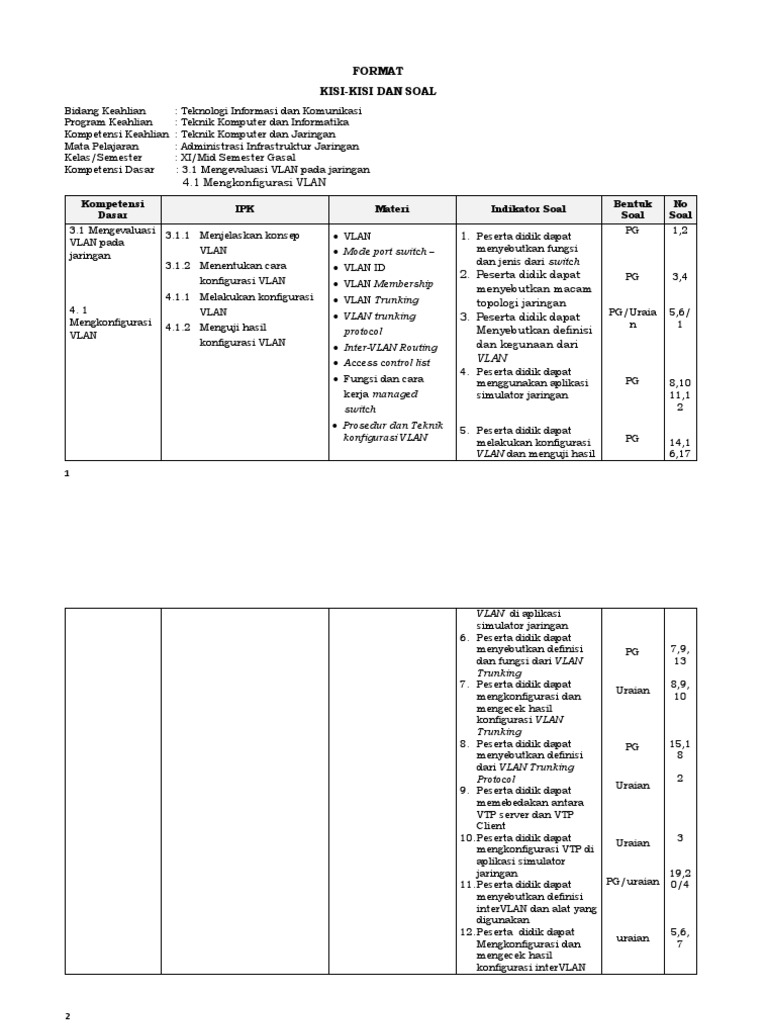 Kisi-Kisi Soal Administrasi Infrastruktur Jaringan Kelas Xii / Xii Administrasi Infrastruktur Jaringan Walid Umar / Xi,xii administrasi sistem jaringan update 13 januari 2020. 20201022 soal tkj kelas xii beserta jawaban oleh jayus diposting pada oktober 22 2020 download kunci jawaban dan soal soal uts qur 39 an hadits kelas 11 sma x2f ma semester 2 terbaru dan terleng matematika kelas 8 matematika kelas 7 matematika. 1 minggu menggunakan alokasi 8 jp. Desain area kerja seperti berikut 5. 1 laporan konfigurasi vlan xi tkj 2 smkn 8 semarang 2018. Konfigurasi dhcp server di router cisco konfigurasi dhcp server di router cisco.