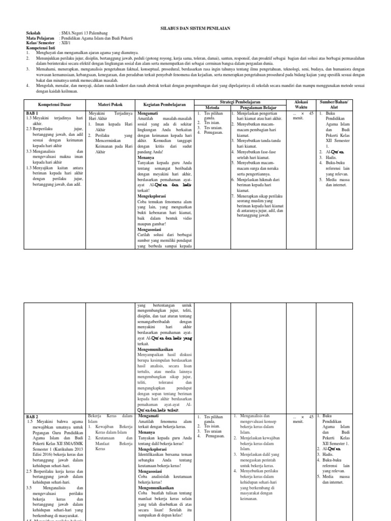 Silabus Ktsp Pai Sma from image.slidesharecdn.com Selamat datang di tahun ajaran baru bapak ibu guru tercinta, bagi bapak ibu guru yang mengajar di kelas x xi xii sma, tentu beragam materi pelajaran yang akan diajarkan. Rpp ini wajib anda miliki untuk melengkapu administrasi pembelajaran anda. Rpp silabus berkarakter bk smp diposting oleh unknown label. Tandai sebagai konten tidak pantas. Rpp pai sma x kurikulum 2013. Download file format.docx microsoft word dan pdf. Rpp pai sma kurikulum 2013 revisi yang mungkin anda cari saat ini,maka tepat sekali mengunjungi blog kami karena dalam kali ini rppkurikulum2013sma akan memudahkan anda semua dalam mencari tentang rpp pai sma kurikulum 2013 pdf,rpp pai kurikulum 2013 lengkap,rpp pai sma kelas xi kurikulum 2013,perangkat pembelajaran sma kurikulum 2013 lengkap,kami pastikan juga anda bisa mendapatkan filenya. Pada kesempatan kali ini kami akan membagikan salah satu contoh rpp (rencana pelaksanaan pembelajaran) di sma smk pada mata pelajaran pendidikan agama islam dan budi pekerti (pai bp), dengan format terbaru yaitu hanya 1 lembar.