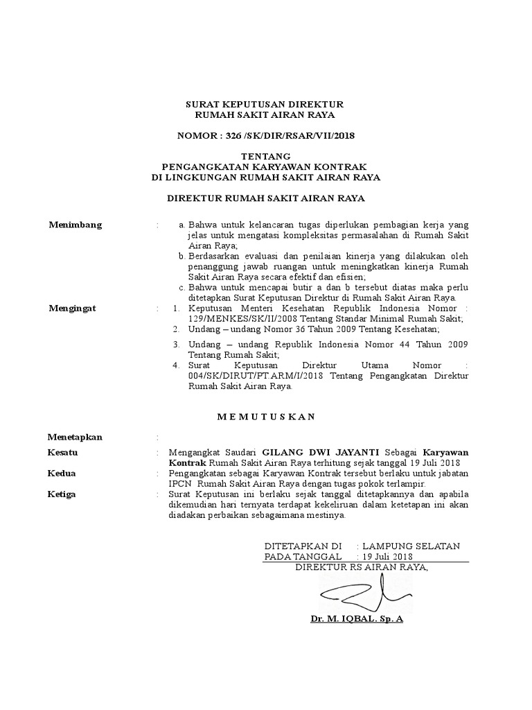 10 contoh surat keputusan pengangkatan karyawan dll lengkap. Panduan orientasi karyawan rumah sakit. 182 tahun 2018 tentang pemberlakuan buku pedoman pengorganisasian instalasi rekam medis dan medikolegal rumah sakit umum daerah kabupaten klungkung direktur rumah sakit umum daerah kabupaten klungkung menimbang : Contoh surat keputusan pengangkatan direktur rumah sakit. Bahwa pengangkatan dan pengangkatan manajer risiko tersebut perlu ditetapkan dengan keputusan direktur. Hasil kredensial dokter oleh sub komite kredensial komite medik. Standar rs pendidikan depkes 2009. Surat keputusan ini berlaku sejak tanggal ditetapkan dengan catatan apabila dikemudian hari ternyata terdapat kekeliruan dalam surat keputusan ini, akan diadakan perubahan sebagaimana mestinya. Peraturan menteri kesehatan no 9 tahun 2014 tentang klinik. Surat keputusan pengurus ybi no. Contoh pembuatan sk (surat keputusan) surat keputusan nomor. Tugas pada instalasi rekam medis b. 02 januari 2017 susunan anggota komite medis rumah sakit graha sehat tahun 2017 no jabatan nama 1 ketua komite medis dr.