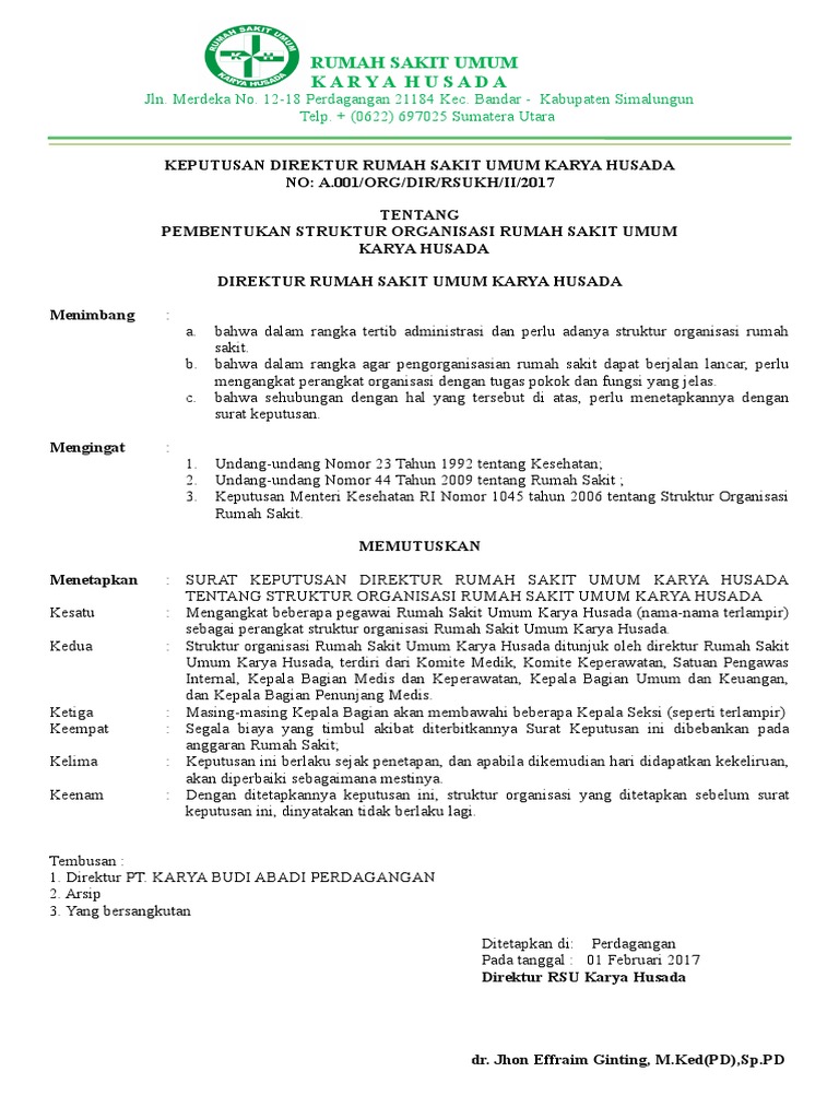 Https Xdocs Tips Doc 114545 Sk No 22523 Thn 2016 Ttg Pengangkatan Direktur Utama Rumah Sakit Unhaspdf Loyy6qpdelo3 from Download.sk direktur tentang pengangkatan tim mutu. Panduan orientasi karyawan rumah sakit. Nurul aliyah sebagai pimpinan tertinggi dalam pengelolaan rumah sakit yang dalam pelaksanaannya dengan dibantu oleh jajaran pejabat struktural. Peraturan direktur rumah sakit nomor : Keputusan direktur utama rs grand medistra no: 755/menkes/per/iv/2011 tentang penyelenggaraan komite medik di rumah sakit. Pengangkatan kepala staf keperawatan fungsional pada rsud dr. Surat keputusan pengurus ybi no.